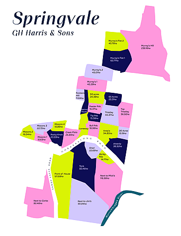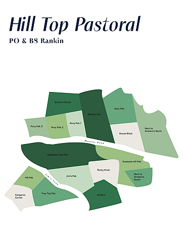 Each map is tailored to your property and can include features such as paddock names and sizes, roads, rivers, creeks, dams, houses, sheds, and more. Designed in your chosen colour palette, the finished map is delivered as a high-resolution, print-ready PDF, ready for you to print, frame, gift and use for farm planning.